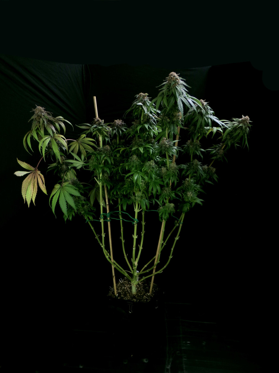 У этого сорта, у его шишек просто-таки удивительный запах. Действительно напоминает терпкий лимон с выраженными топливными нотками. Шишки плотные и смолистые. По структуре куст пышный, со средней длины колами. Только нижние ярусы не имеют длинные колы.