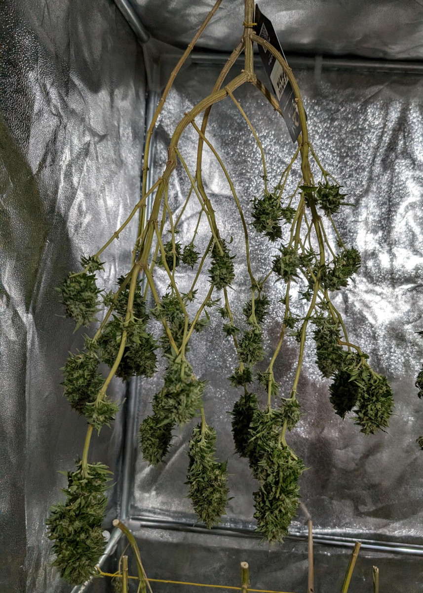 Сорт неплох, вкусный, но вот тренировать эти растения не порекомендую. Застрессился куст после тренировки. Сами шишки абсолютно твердые и выглядят прекрасно. Они пахнут и имеют очень фруктовый вкус, как раз то, что мне нравится. Урожайность не такая большая, как я хотел бы, но все равно неплохая, чуть больше 56 грамм с растения.