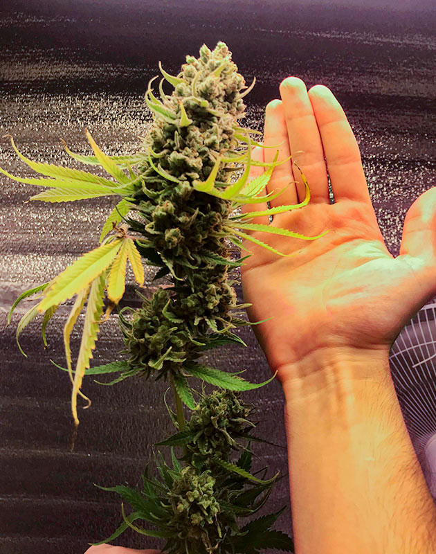 К 15 неделям грова бошки стали просто огромными, и если бы не ScrOG, то пришлось бы подпирать или подвязывать колы. запах очень насыщенный, почти что осязаемо густой и едкий – всего несколько минут в боксе, и несколько часов потом пахнешь как кусты.