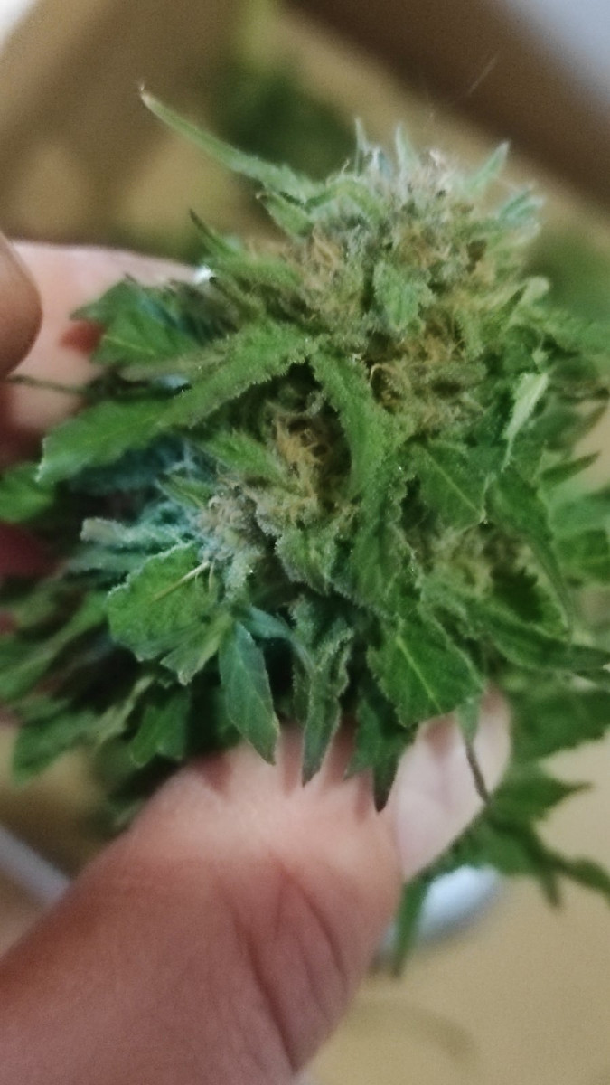 Выращиваю в ауте,3 неделя цветения.Куст 1,8 м. Весь в шишках и трихомах. Просто бомба.Еще не пробовал, жду пока созреет.