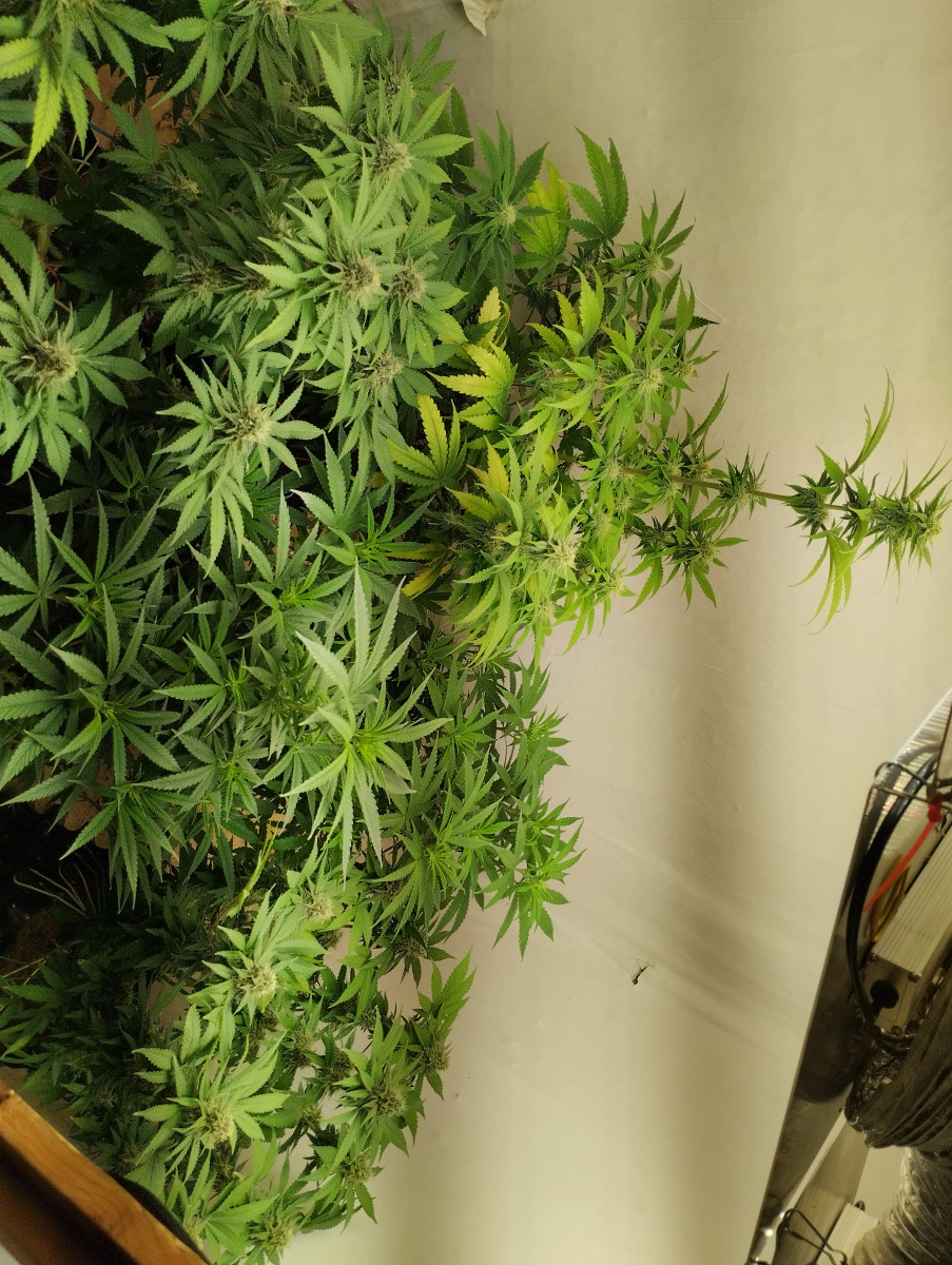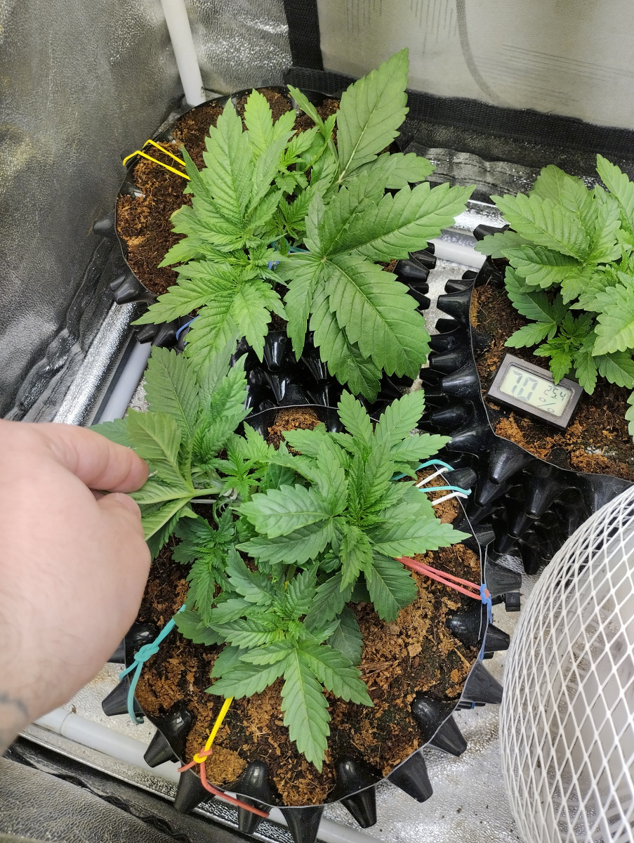Растихам 70 дней. Из осталось двое (из предыдущих отзывов), на одну упал борд и полностью разламал, я ее и срезал. И как раз перевел на цвет две другие, на фото думаю увидите, кстати раста с самой большой колой и слегка пожелтевшей листвой - бонусная от семяныча Шишкаберри.