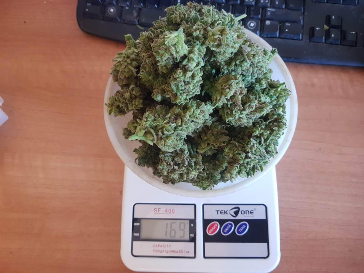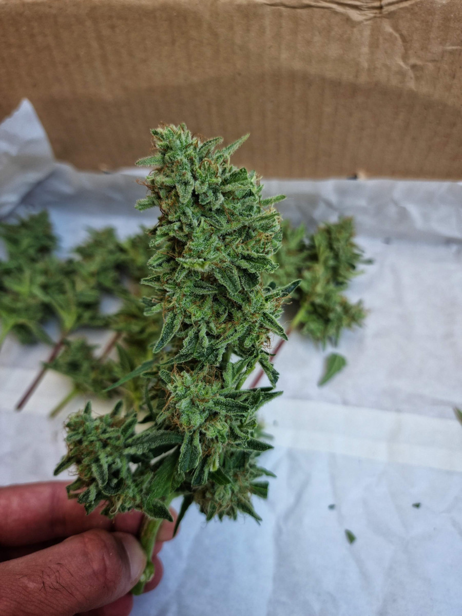 Идеальная всхожесть, очень хороший рост и великолепное цветение. Урожай собран всего через 11,5 недель после посадки семечек. Шишки полностью покрыты смолой.