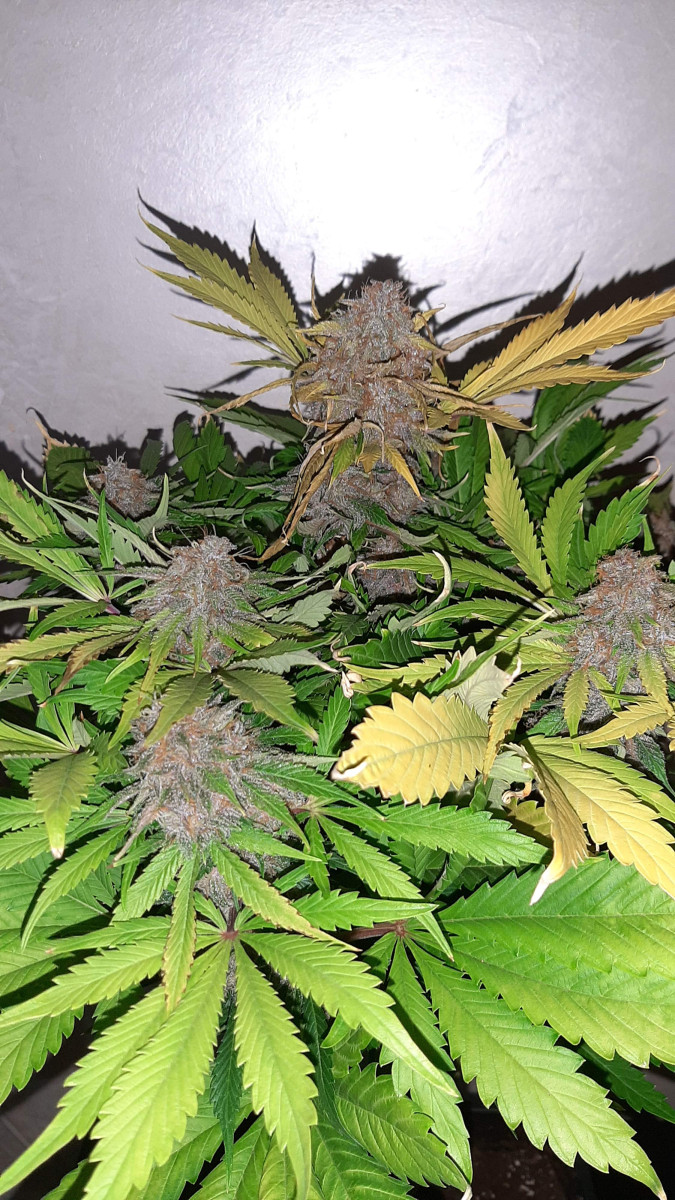 Растение росло очень быстро, настолько быстро, что в середине цветения у меня возникли некоторые проблемы с его питанием. Я оттягивал момент харвеста и вообще хотел подержать на цветении еще неделю, но захарвил раньше, потому что куст уже был слишком крупным.