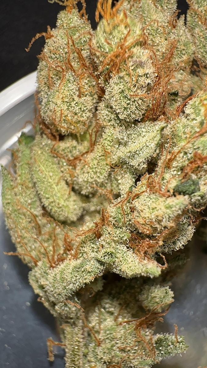 Запах - приторный апельсин - очень смолистая все листья в белой смоле - думаю выдаст отличный результат- после тренировки скрог - 18 кол на 2 х кустах - все жирные и смолистые