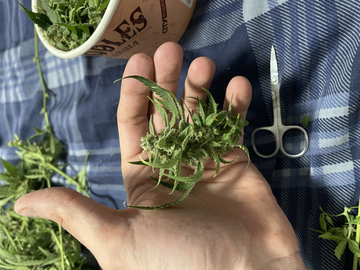 Окончательный вес сухих шишек составил 196 г, плюс 49 г обрезков и 2 г смолы от ножниц и перчаток. Я более чем доволен результатом. Почки очень смолистые и липкие.