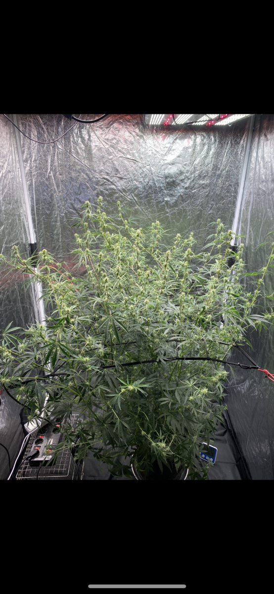 Очень быстро перешел на цвет, кормил проглоном на кокосе , сначала рос в боксе 60*60*160- через 1,5 месяца не помещался не по росту , ни по обьему - пришлось покупать бокс 120*120*2 - он и его забил полностью, скорее всего приобладала сатива .