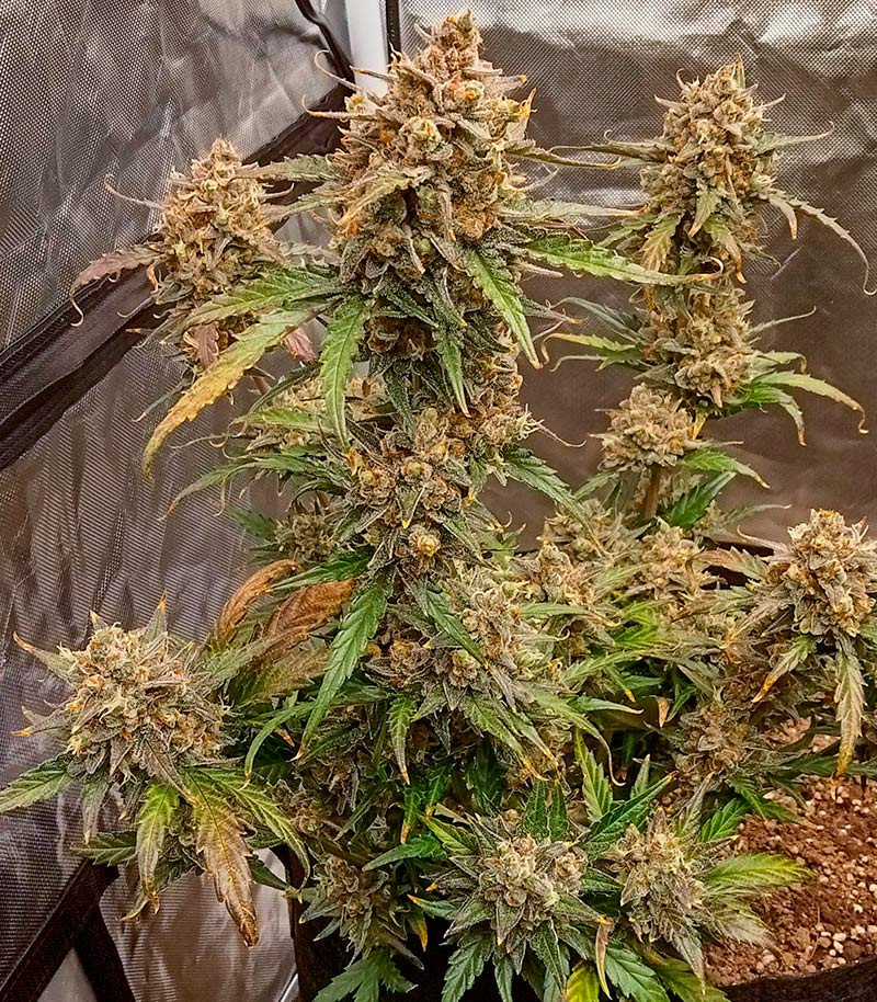 А еще Purple Juice Auto предпочитает легкий субстрат для активной аэрации корней. Традиционную почвенную смесь можно размешать с кокосом и перлитом, чтобы кислород свободно проникал к корневой системе. Такая воздушная структура грунта стимулирует быстрый рост и улучшает усвоение питательных веществ. В результате кусты формируются более крепкими, а соцветия активнее набирают плотность и смолистость.