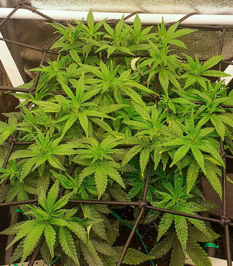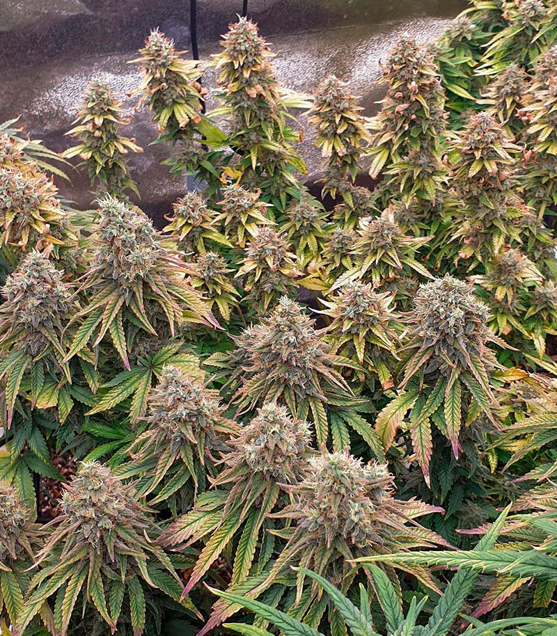 Глядя на созревающую плантацию Sour Strawberry, можно подумать, что это типичный гибрид с доминированием индики. Однако на самом деле растения имеют небольшой перевес именно в сторону сативы. В первую очередь на это намекают воздушные бутоны, общий вес которых, к слову, может доходить до 1,5-2 кг с уличного куста и 600-700 г с 1 м² в помещении.