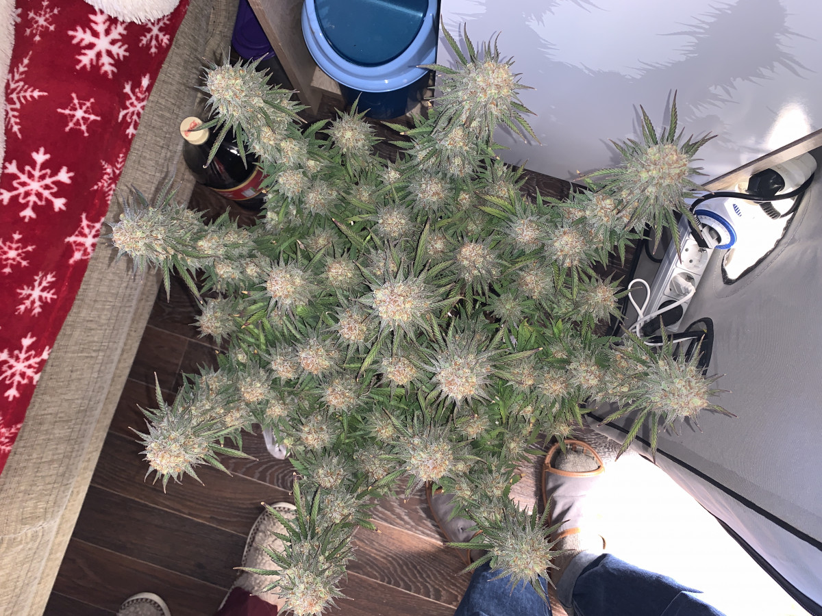 На данный момент эффект был очень сильный, сативный и дурной до безобразия. Я такое не люблю и боюсь. Аромат кислый мед и земля. Пролечка покажет, надеюсь, уйдет в что то более доброе и мягкое по эффекту (хотя, думаю будет ещё хуже ггг) . 90 дней от семечки до урожая. Огонь!