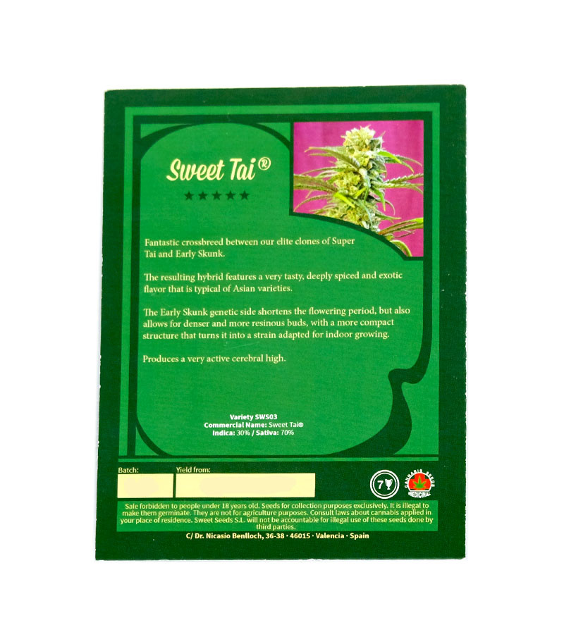 Семена сорта Sweet Tai fem (Sweet Seeds) Испания, Феминизированные, Фотопериодные, ТГК-10 - 18