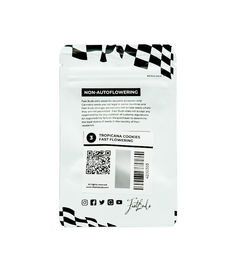 Сорт конопли Tropicana Cookies FF – это ускоренная версия оригинального растения, которая проходит период цветения всего за 6-7 недель. Урожайность при этом достигает показателя в 650 г шишек с куста, содержащих 28 % ТГК и имеющих приятные вкусоароматические качества. Подходит гроверам-новичкам.