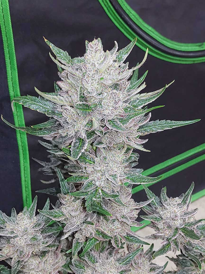 Из 3 проращивала 2, все отлично. Растения развиваются очень бодро в невысокие плотные пышные елочки. Растила в 10-литровых гроубегах под ДНаТ 400 Вт, применяла подгиб, как и рекомендует производитель. Не знаю, какими бы они выросли, но думаю невысокими – ну до 1,1 м может быть. А так были по 95 см примерно. Вега длится всего 3 недели и затем 6,5 недель цветения. Колы крупные. Под светом прям очень хорошо боковые укрупняются. Смолы очень много. А пахнет потрясающе – действительно ванильная сладость с пикантностью земли.