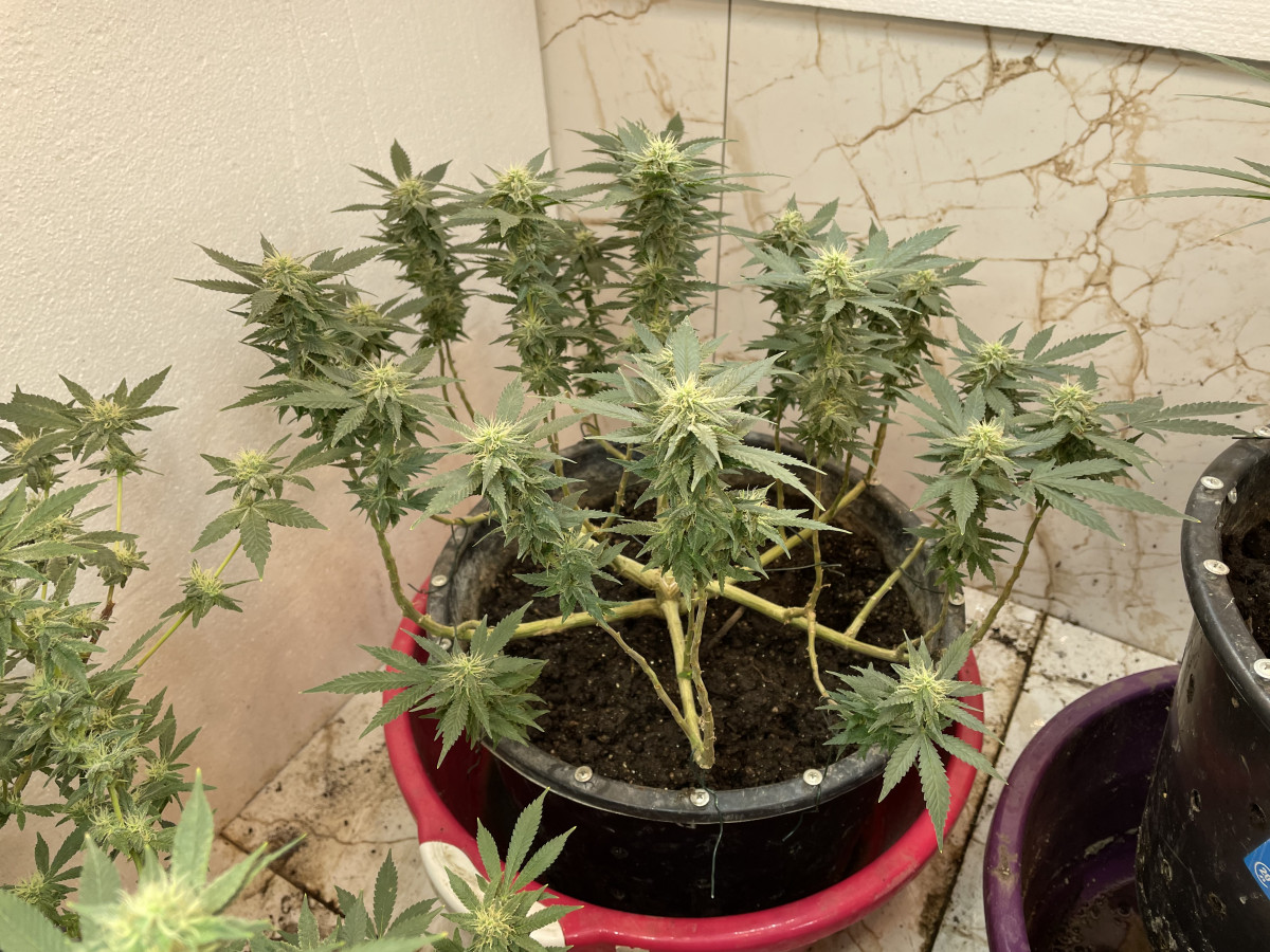 2 месяца веги,3 недели цветения. Не плохой рост,но не особо любит обрезку. Но скорее всего это я перебарщиваю с тренировками ??♂️ Не высокий рост.